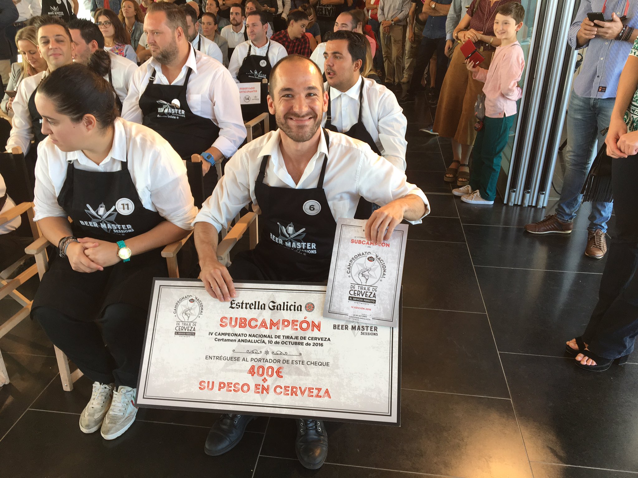 Esta mañana se ha celebrado en Sevilla el Beer Master de Andalucía, del IV Campeonato de Tiraje de Cerveza Estrella Galicia. Tras haber pasado varias fases el ganador ha sido Adrián de la Rosa del Bare Nostrum, de Málaga. El segundo lugar lo ha conquistado el sevillano Jairo Ponce de la Bodega Torre del Oro.