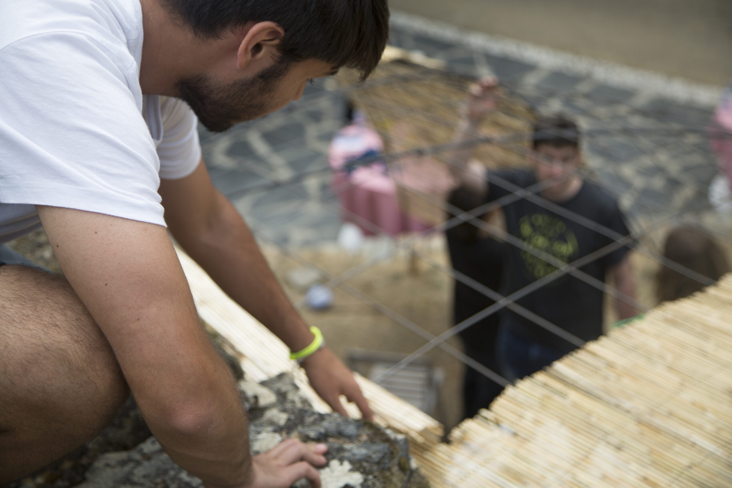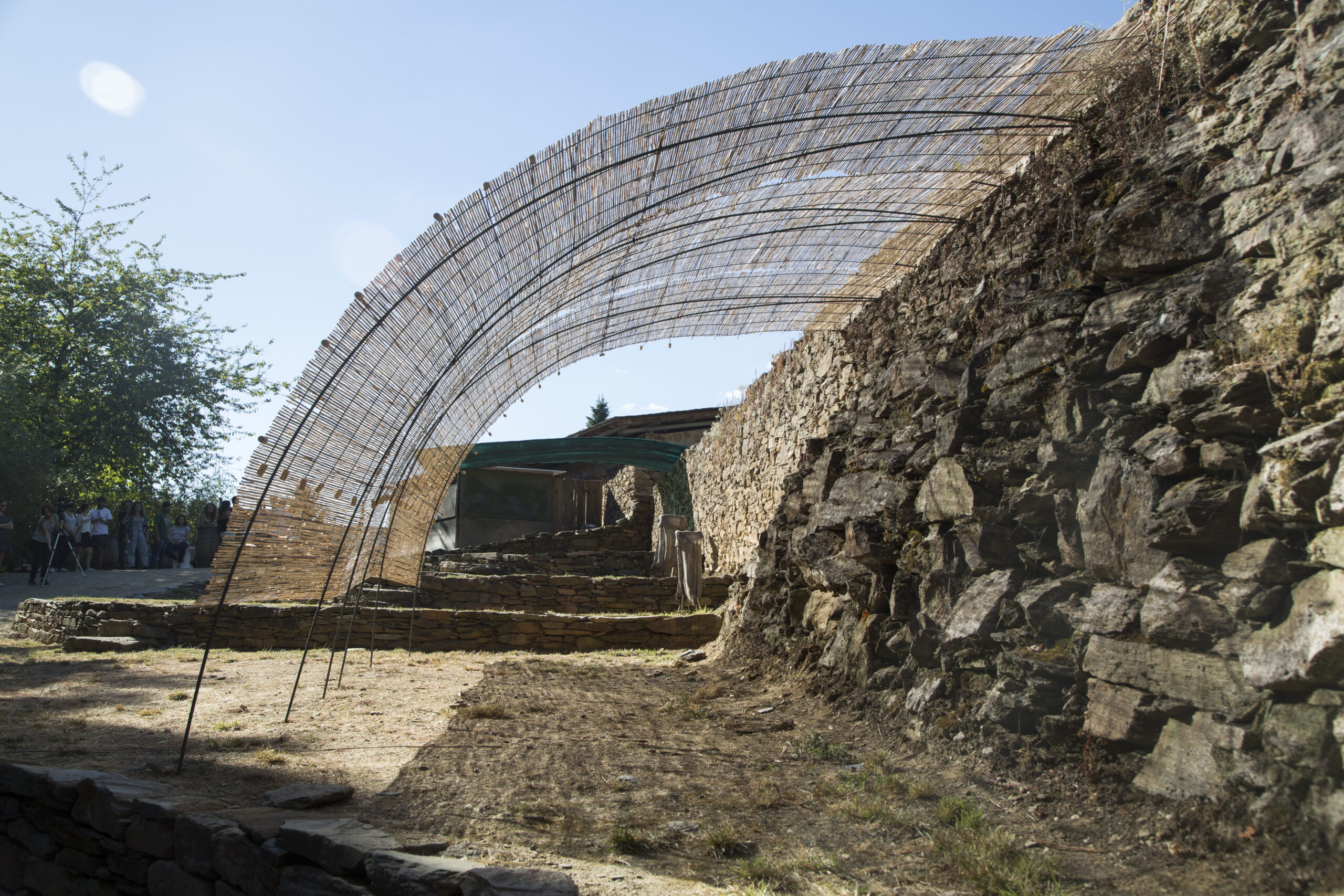 Este segundo taller ha girado en torno a la creación de espacios con sombra en nuestra bodega de Ponte da Boga elaborados con entrelazados de hierro. Todos los participantes han colaborado en el diseño y montaje de este prototipo exponiendo sus ideas y trabajando con uno de los arquitectos más destacados de nuestro país. El resultado fueron dos prototipos, uno afianzado al suelo y otro en voladizo. Los alumnos del taller cubrieron ambos con distintos materiales para comprobar el efecto de las sombras en el terreno, aunque el planteamiento último de las dos piezas, es que la propia viña cubra la estructura metálica, con un resultado integrado en el paisaje.